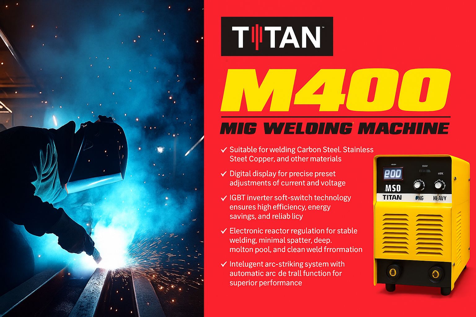 Experience unmatched welding performance with the TITAN MIG Welding Machine, engineered by Nirmal Trading Corporation for industrial-grade reliability and precision. Built with advanced IGBT inverter technology, this 3-phase MIG welder delivers high efficiency, stable arc performance, and superior weld quality—making it an ideal choice for fabrication workshops, manufacturing units, and heavy-duty industrial applications. Key Features 🔶 High Output Power – 400 Amp With an impressive 400 Amp output range, this machine is capable of welding medium to heavy-gauge metals with ease, ensuring deep penetration and strong, clean weld joints. 🔶 3-Phase Industrial Power Designed for demanding environments, the 3-phase power input ensures consistent voltage, higher efficiency, and long-term durability even during extended welding operations. 🔶 Advanced IGBT Technology Equipped with IGBT inverter technology, the TITAN MIG welder offers: Smooth and stable arc Reduced power consumption Lower spatter for cleaner welds Enhanced control and welding precision 🔶 Forced-Air Cooling System A high-performance forced-air cooling mechanism keeps the machine running efficiently, protecting internal components from overheating and ensuring a longer lifespan. 🔶 New, Robust, and Workshop-Ready Manufactured with premium components and strict quality standards, this machine is built to handle tough working conditions. It arrives brand-new and ready for immediate integration into your welding setup. What is MIG Welding? MIG (Metal Inert Gas) Welding uses a continuously fed wire electrode and a shielding gas to create strong, high-quality welds through an electric arc. It is widely recognized as one of the easiest, fastest, and most versatile welding methods—perfect for automotive work, fabrication, construction, manufacturing, and repair tasks. Ideal For ✔ Heavy fabrication ✔ Structural welding ✔ Automotive and chassis work ✔ Manufacturing units ✔ Workshops & industrial welding applications